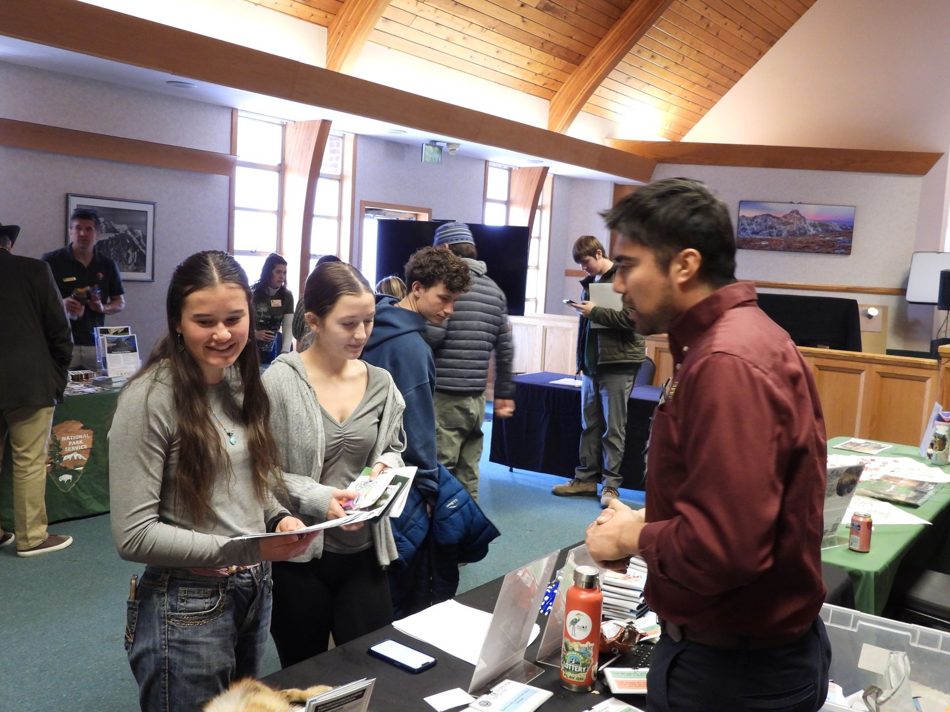 In the afternoon, students enjoyed a catered lunch sponsored by Boulder County Parks & Open Space, followed by a bustling tabling fair featuring 19 organizations from across the Front Range. Representatives shared information about volunteering, internships, and career pathways in natural resources, education, and outdoor recreation, even braving subfreezing temperatures to be there for students.